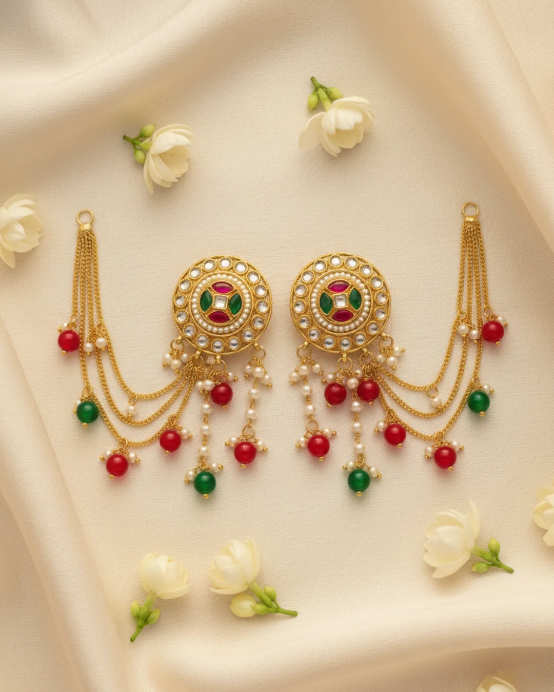 Finished in a rich antique gold tone, these Bahu Bali–style earrings embody strength, beauty, and celebration. Every delicate movement of the chains adds drama and grace, making them a show-stopping choice for weddings, festive occasions, and traditional celebrations.
