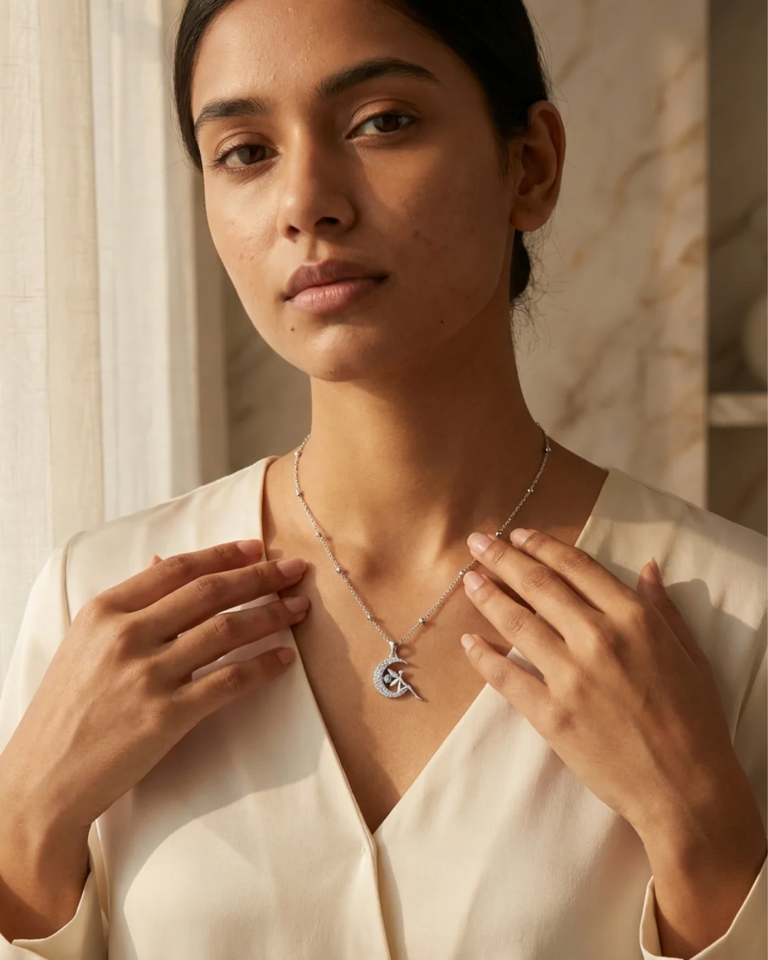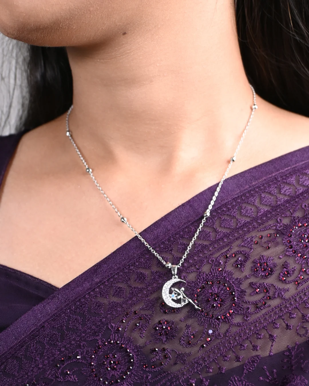 Lightweight and comfortable for daily wear, this necklace is perfect for casual outfits, special occasions, or as a thoughtful gift for someone who loves whimsical and elegant jewelry. The timeless design pairs beautifully with both western and fusion outfits, adding a soft, magical charm to your jewelry collection.