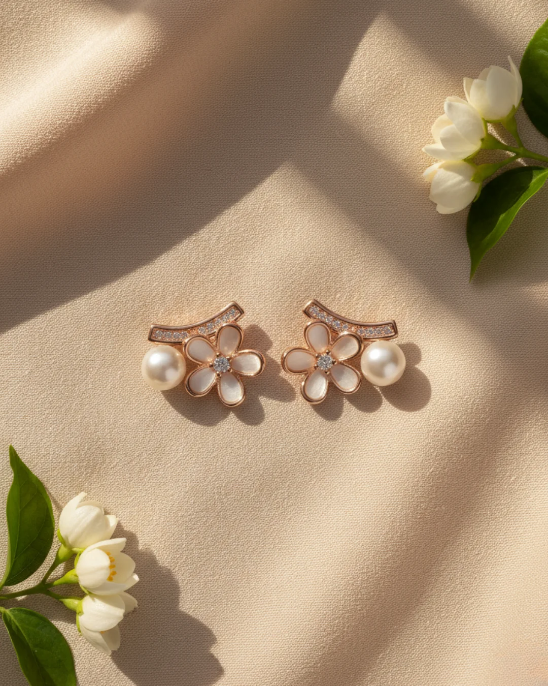 Let your everyday style bloom with the WishBuds Pearl Bloom Studs — a graceful fusion of floral elegance and timeless pearls. Designed for modern women who love subtle luxury, these earrings feature a delicate flower motif accented with a luminous pearl, creating a soft yet striking statement.